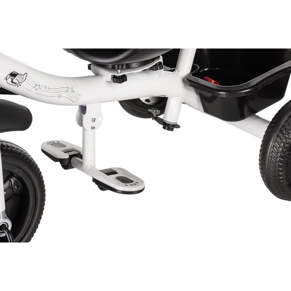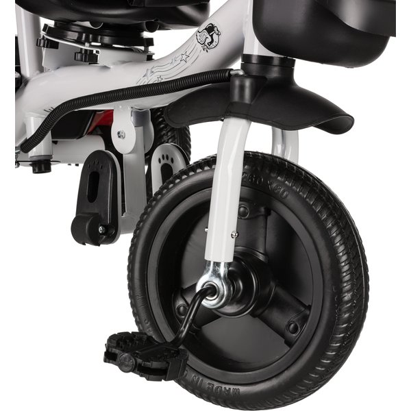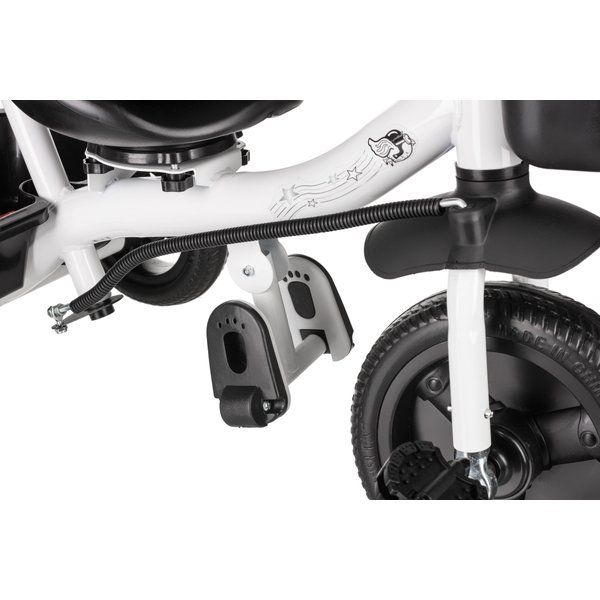 W łatwy sposób zamienimy go w rowerek trójkołowy z pedałami, który pozwoli na dalsze trenowanie swoich zdolności motorycznych oraz pewności ciała. Wystarczy tylko odpiąć barierkę zabezpieczającą oraz prowadnicę i maluch może ruszyć przed siebie! Kierownica posiada antypoślizgowe nakładki co pozwoli na pewny chwyt, a koła z pianki EVA zapewnią komfortową jazdę niezależnie od nawierzchni.