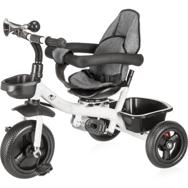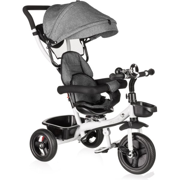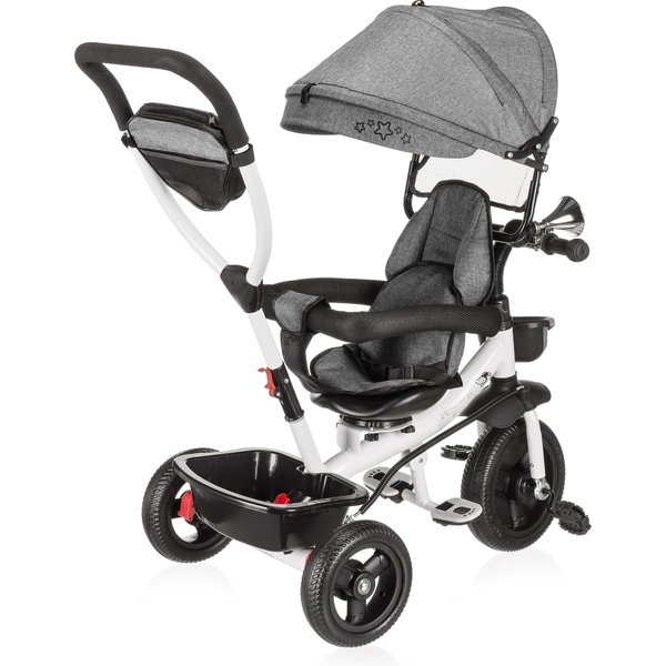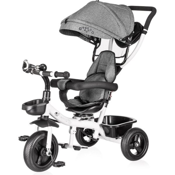 Będzie stanowił bezpieczny i wygodny środek transportu, który będzie mógł zastąpić tradycyjną spacerówkę. Obrotowe siedzisko pozwoli na ustawienie go przodem lub tyłem do kierunku jazdy. Pozwoli to, więc dostosować go do indywidualnych preferencji maluszka. Wygodna rączka do prowadzenia i sterowania rowerkiem pozwoli rodzicom na bezproblemowe operowanie kierunkiem i prędkością jazdy. Dwa pojemniki oraz odpinana saszetka na drobiazgi pozwolą zabrać ze sobą zabawki i inne rzeczy, które przydadzą się podczas spaceru. Bezpieczeństwo zapewnią odpinana barierka i pasy, które zapobiegną one przed wypadnięciem dziecka z rowerka. Komfortowe siedzisko zapewnią wygodę bez względu na jak długi spacer się wybierzemy, a składany daszek uchroni maluszka przed promieniowaniem w słoneczne dni.