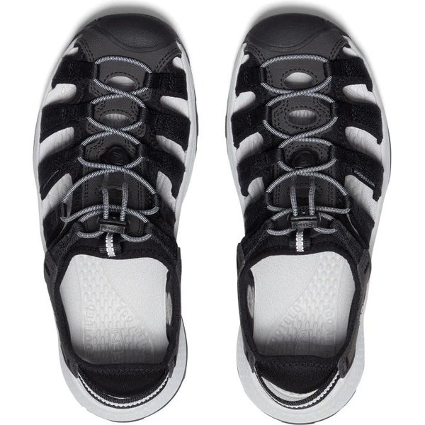 Asrtoria West jest nowszą, ulepszoną wersją sandałów hybrydowych marki Keen. Para została wzbogacona o aż cztery autorskie technologie. Solidna konstrukcja została wykonana z najlepszych tworzyw, co przekłada się na trwały model, który będzie się sprawdzał przez wiele sezonów bez uszczerbku na wyglądzie i jakości. Wysokostandardowe materiały, z których wykonany jest model pochodzą z poddanych recyklingowi plastikowych butelek P.E.T.. Odkryta pięta i liczne otwory z przodu buta zapewniają najlepszą wentylację i pozwalają zachować komfortowe uczucie suchej i świeżej skóry.