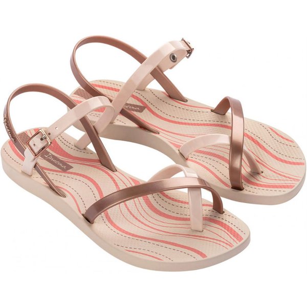 Sandały Fashion Sand Ipanema to doskonały wybór dla kobiet ceniących minimalizm i styl. Dzięki płaskiej podeszwie oraz antypoślizgowej fakturze sprawdzą się zarówno na co dzień, jak i na plaży. Paski tworzące pętle na palce dodają elegancji, a pasek wokół kostki zapewnia stabilizację i wygodę noszenia. Wyjątkowy wzór na wkładce oraz matowe wykończenie pasków nadają butom oryginalności. To idealne rozwiązanie dla kobiet, które cenią sobie wygodę i styl w jednym. Dzięki uniwersalnej kolorystyce sandały będą doskonałym uzupełnieniem każdej stylizacji.