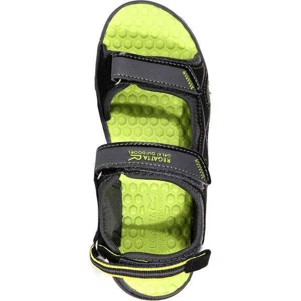 Sandały wykonane zostały z wytrzymałego materiału, aby mogły posłużyć przez długi czas. Warstwa wierzchnia z lekkiej siatki zapewni odpowiednią przewiewność, a wyściółka ze spandeksu gwarantuje odpowiednie dopasowanie. Również regulowane paski na rzepy wokół całej stopy i pięty sprawią, że model ten będzie odpowiednio trzymał się na swoim miejscu i sprawią, że buty jeszcze lepiej dopasują się do stopy. Zastosowana wkładka EVA jest odporna na działanie wody, a także zapewnia odpowiednią amortyzację i lepszą stabilność. Z kolei zewnętrzna podeszwa zewnętrzna jest trwała i odporna, a przy tym antypoślizgowa, więc na każdej nawierzchni zapewniona będzie większa przyczepność i pewniejszy krok. Oprócz wysokiego komfortu model ten zapewni Twojemu dziecku stylowy, wakacyjny wygląd.