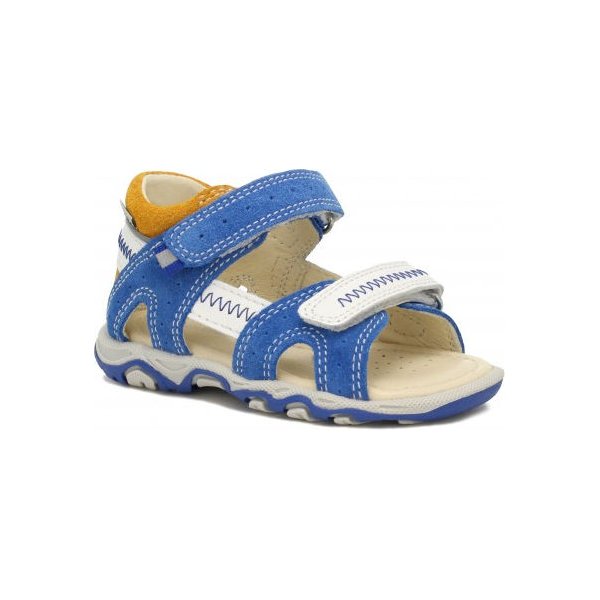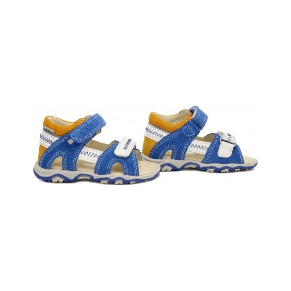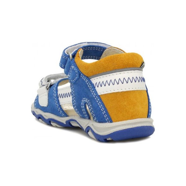 Model ten został wykonany z trwałych materiałów, odpornych na uszkodzenia, o które nietrudno w trakcie letniej zabawy. Cholewka powstała z weluru i skóry licowej, a wkładka i wnętrze sandałów ze skóry naturalnej. Wygodne zapięcie na rzepy pozwoli na szybkie dopasowanie obuwia do stóp malucha, a gruba podeszwa ochroni przed złym wpływem nierównego podłoża. Specjalna konstrukcja profilaktycznie wspiera rosnące stopy dziecka.