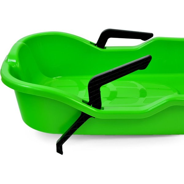 Sanki Sno Glider posiadają hamulec ręczny po obu stronach siedziska, który gwarantuje bezpieczne zatrzymanie. Dodatkowo, ten model został wyposażony w sznurek z wygodną końcówką. Lekka forma to pewność, że dziecko nie zmęczy się, ciągnąc pod górkę sanki Sno Glider podczas aktywnego zimowego dnia!