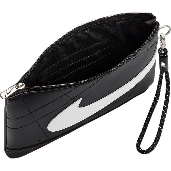 Saszetka Icon Blazer Wristlet Large od Nike to stylowy dodatek, który łączy funkcjonalność z elegancją. Dzięki prostokątnemu kształtowi i teksturowanej powierzchni, stanowi doskonałe uzupełnienie każdej stylizacji. Zintegrowany pasek na nadgarstek z metalowym kółkiem zapewnia wygodę i bezpieczeństwo noszenia. Praktyczne, wewnętrzne przegródki umożliwiają przechowywanie gotówki, kart oraz dokumentów tożsamości, a dwie dodatkowe kieszenie pozwalają na organizację drobnych przedmiotów. Zamek błyskawiczny z metalowymi elementami gwarantuje trwałość, a gładka tylna strona dodaje elegancji. Widoczne logo marki podkreśla renomę Nike, a kontrastowe przeszycia nadają całości nowoczesny wygląd.