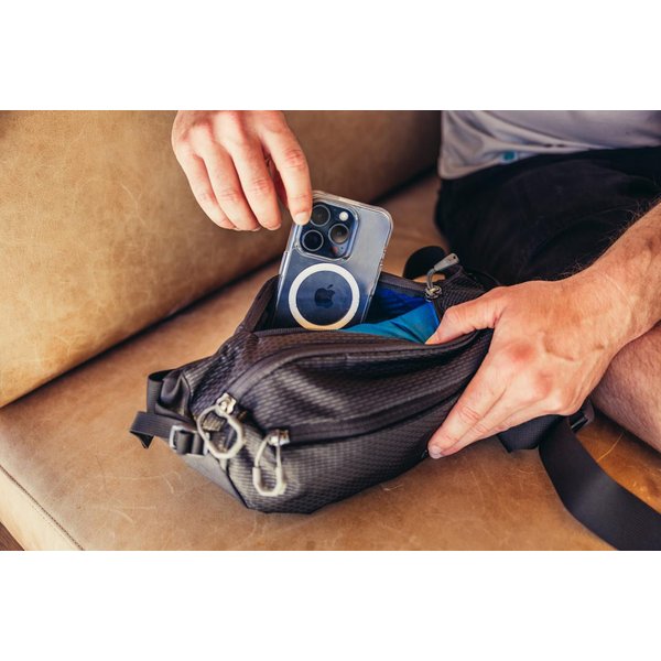 Saszetka Nano została zaprojektowana z myślą o maksymalnej funkcjonalności. Duża komora główna, zamykana na zamek, pomieści Twój telefon, portfel oraz inne codzienne drobiazgi. Wewnętrzne przegrody z siateczki umożliwiają zorganizowanie przestrzeni w taki sposób, by każdy przedmiot miał swoje miejsce. To pozwala uniknąć bałaganu, a jednocześnie umożliwia szybki dostęp do potrzebnych rzeczy. Przednia kieszeń z bezpiecznym zaczepem na klucze to kolejna praktyczna cecha tej saszetki. Dzięki niej klucze są zawsze na swoim miejscu i nie musisz się martwić, że w trakcie wędrówki się zgubią.
