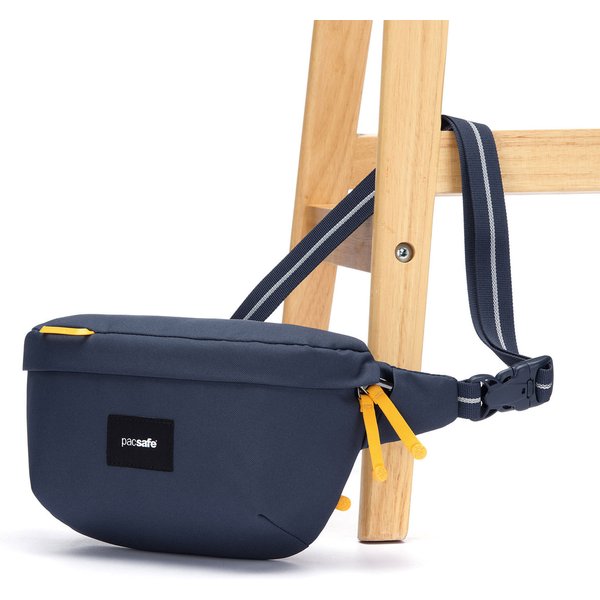 Dzięki kompaktowym rozmiarom i pojemności 2,5 litra, saszetka ta pomieści wszystkie niezbędne rzeczy, takie jak telefon, portfel czy okulary przeciwsłoneczne, zapewniając tym samym wygodę i komfort podczas podróży. Nerka Pacsafe Go została wykonana z materiałów pochodzących z recyklingu, co sprawia, że jest nie tylko funkcjonalna, ale również ekologiczna. Hydrofobowa powłoka, która jest wolna od PFC spowalnia wchłanianie wilgoci.