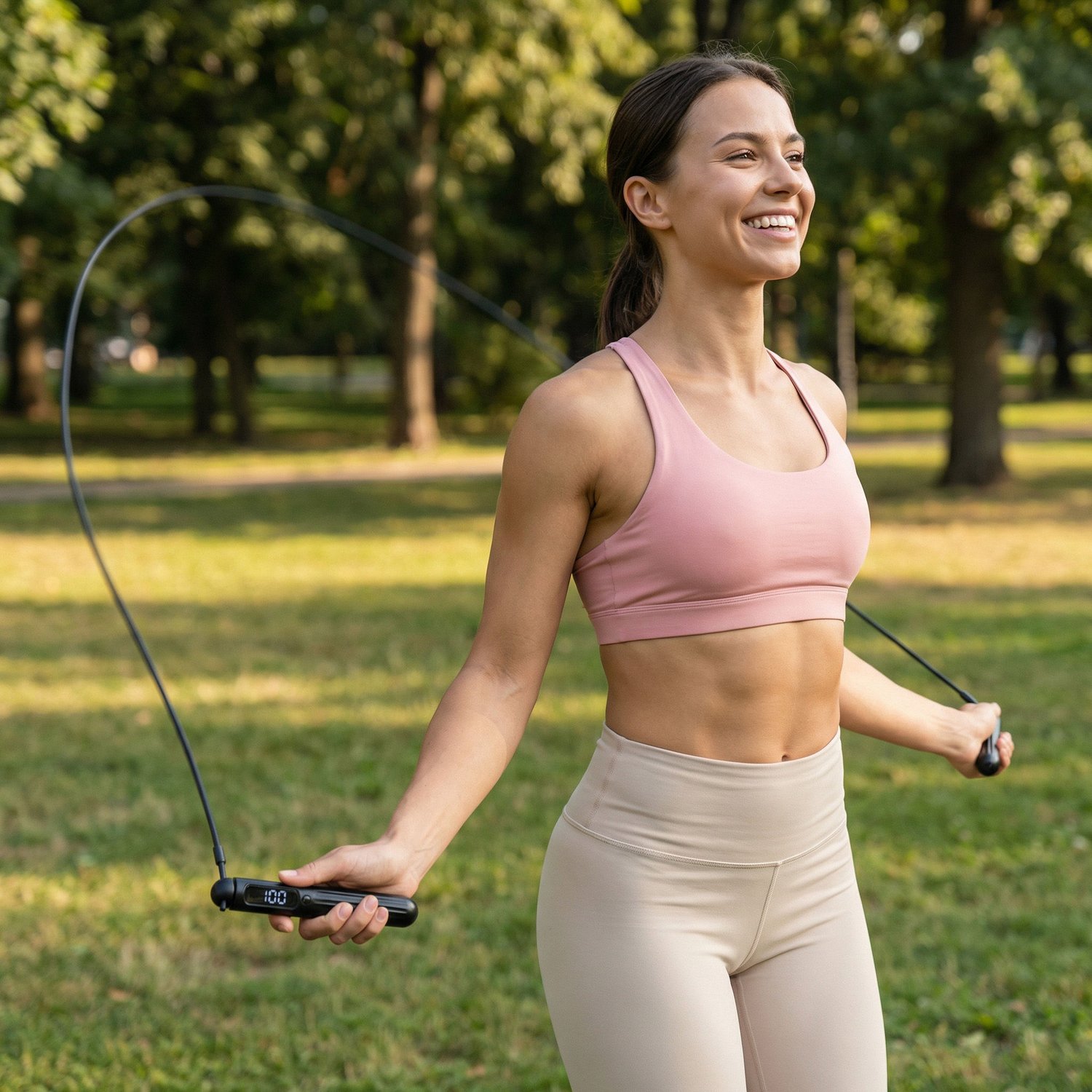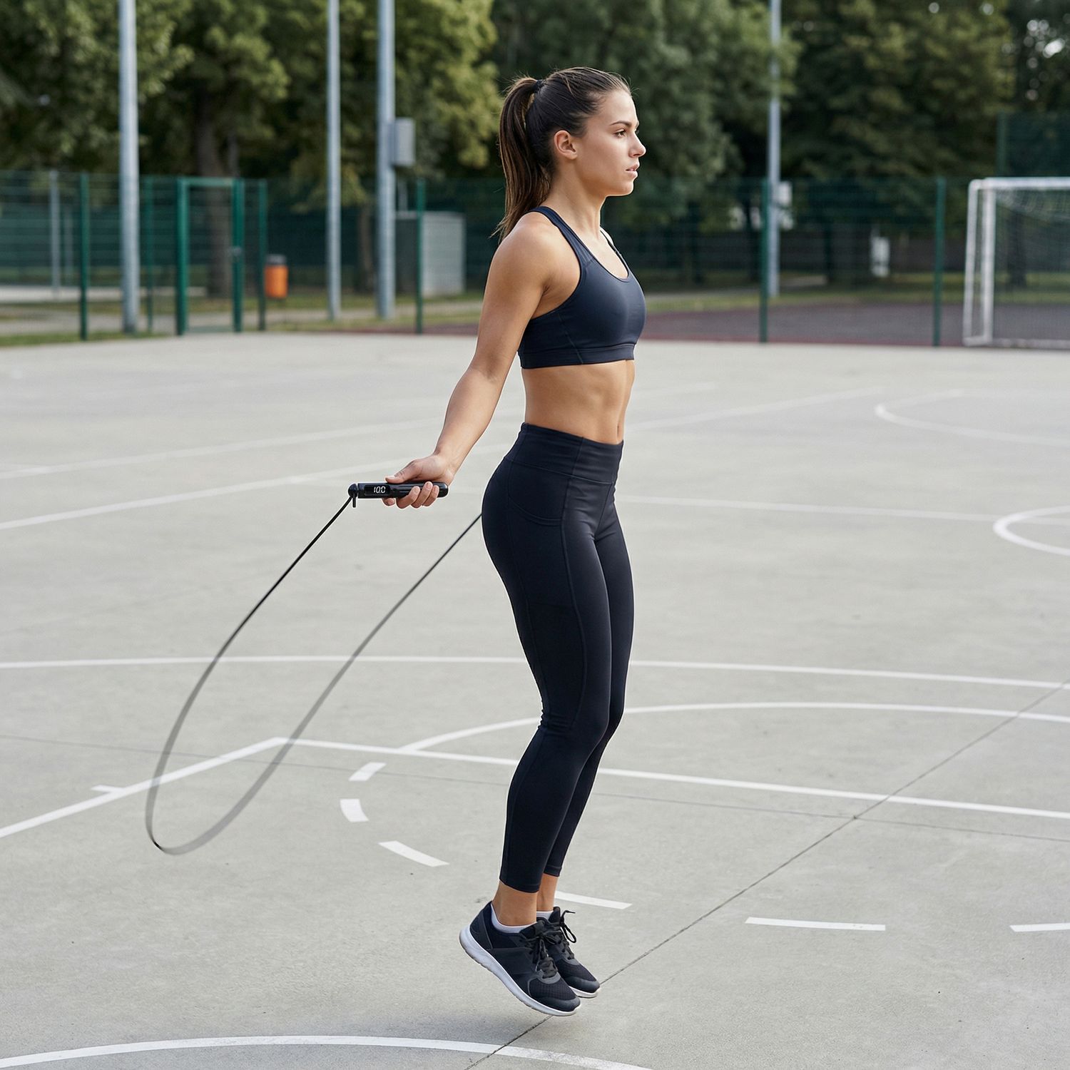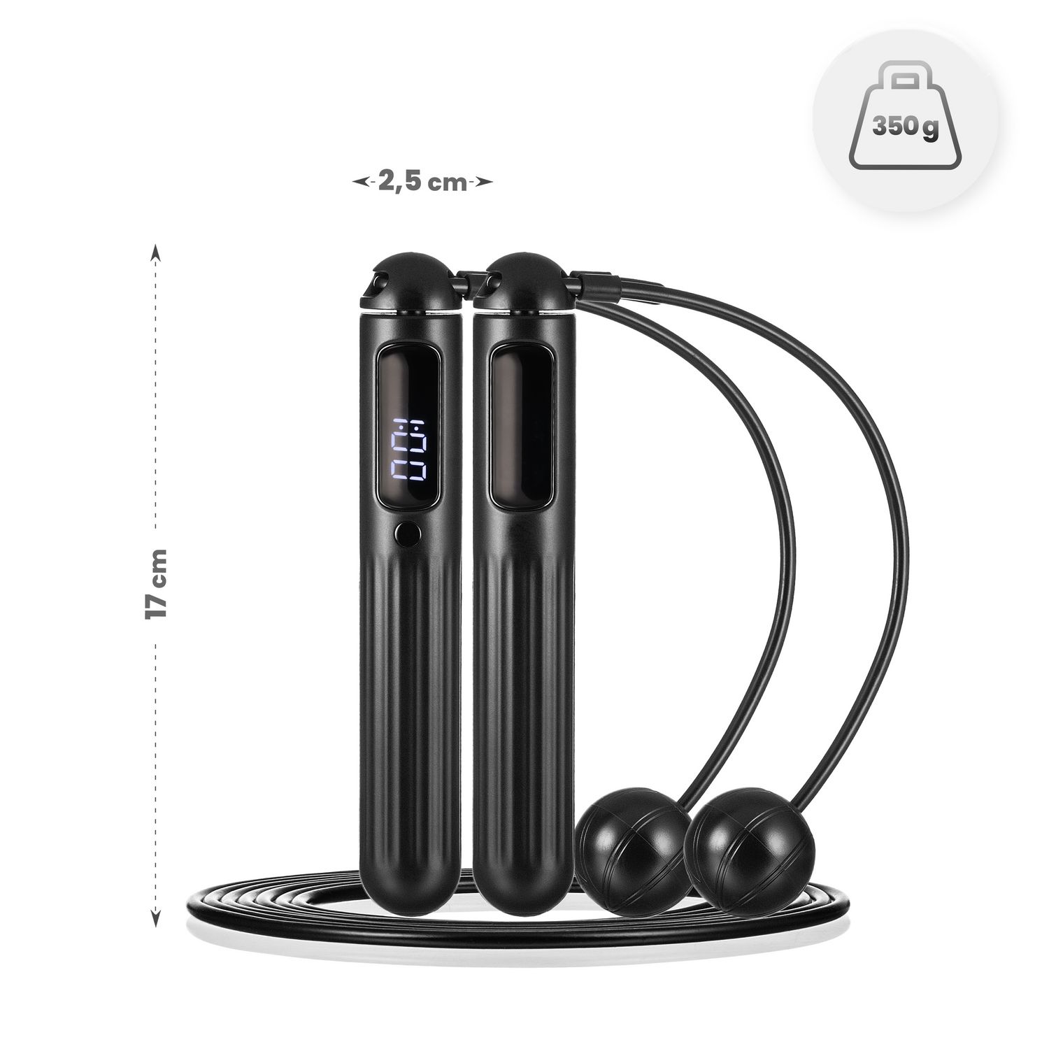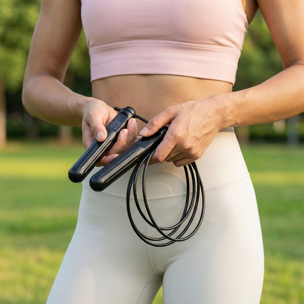 - Śledzenie parametrów w czasie rzeczywistym: Licznik na uchwycie pokazuje liczbę skoków i czas, ułatwiając kontrolę nad intensywnością ćwiczeń.