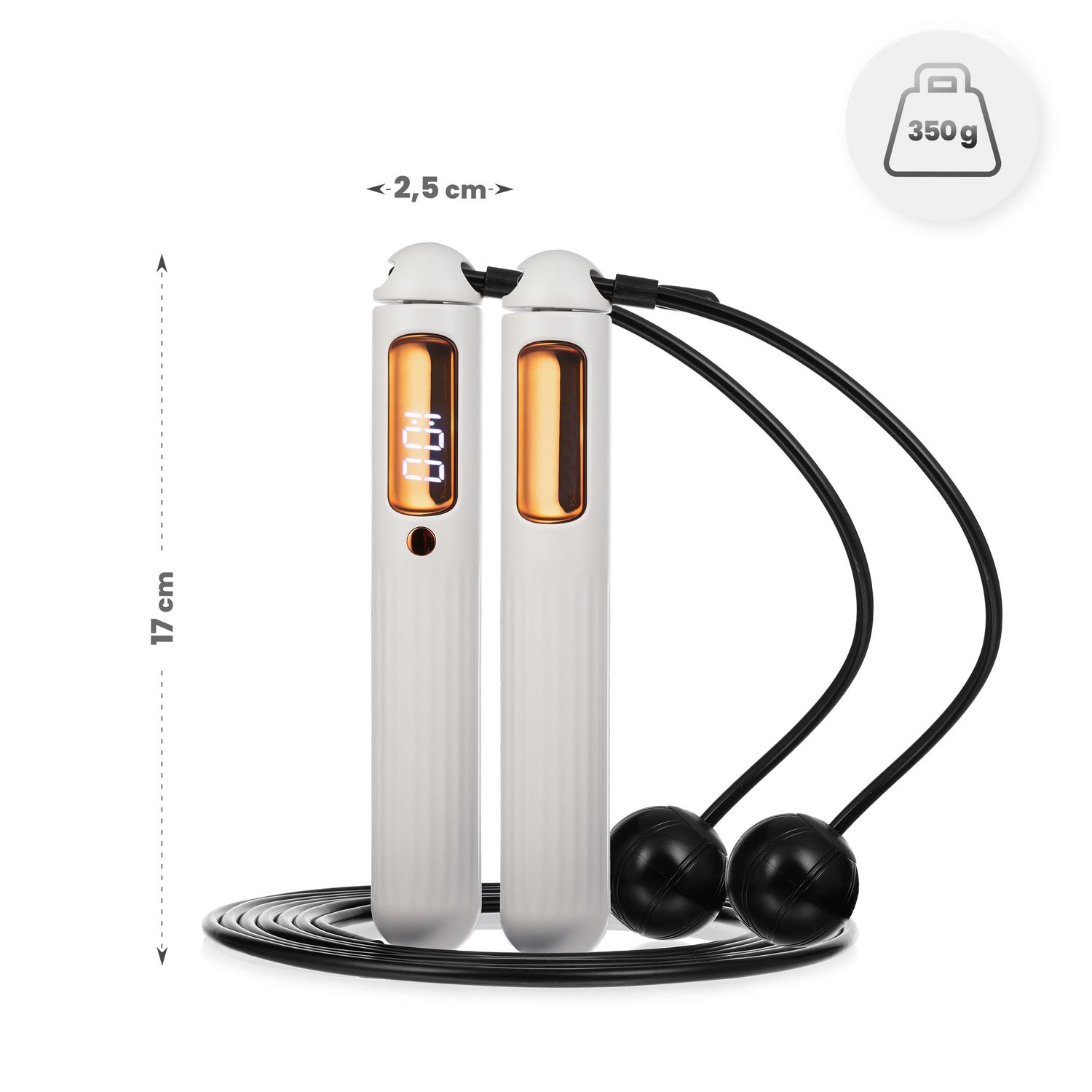 - Śledzenie parametrów w czasie rzeczywistym: Licznik na uchwycie pokazuje liczbę skoków i czas, ułatwiając kontrolę nad intensywnością ćwiczeń.