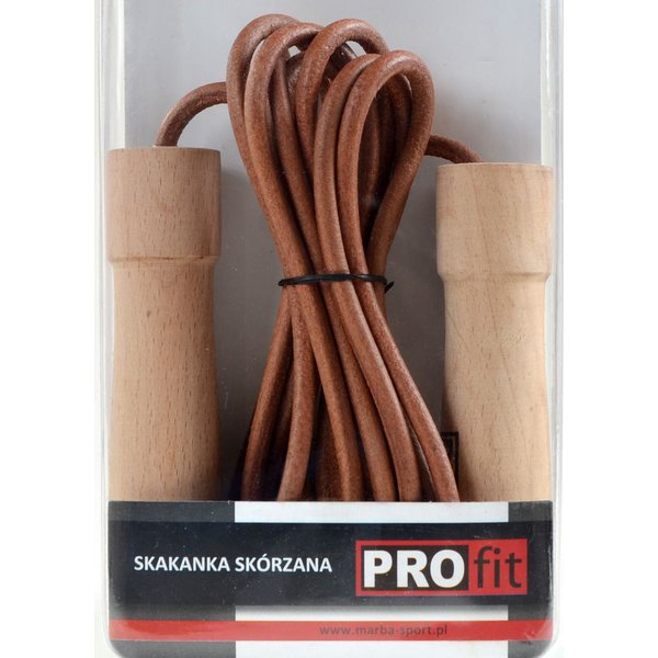 Trwała, bo wykonana ze skóry i drewna skakanka Ever marki Profit to prosty przyrząd treningowy z pomocą którego wzmocnisz nogi, spalisz zbędne kalorie czy rozgrzejesz się przed treningiem. Drewniane rączki osadzone na kulkowych łożyskach dobrze leżą w dłoni i zapewniają płynny obrót linki. Skórzana linka posiada regulowaną długość, gdzie maksimum to 280cm.