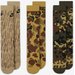 Przyjemna w dotyku tkanina została częściowo pozyskana z plastiku poddanego recyklingowi. Wysokojakościowy poliester znacząco poprawia trwałość dodatku, skarpety nie stracą swojego kształtu i koloru, nawet przy częstym użytkowaniu i praniu. Materiał jest przyjemny w dotyku i pozwala skórze oddychać. Domieszka spandexu wspiera sprężystość i elastyczność, krój dopasowuje się do stóp, nie uwiera i nie powoduje dyskomfortu. Wzorzyste skarpety ciekawie się prezentują, sprawdzą się w każdej luźnej stylizacji. W opakowaniu znajdują się 3 pary.