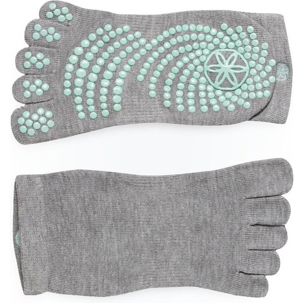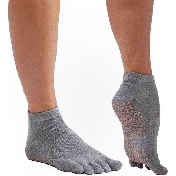 Skarpety antypoślizgowe do jogi marki Gaiam to idealne rozwiązanie dla osób pragnących ćwiczyć bez maty. Dzięki silikonowym wypustkom na podeszwie zapewniają stabilność i równowagę podczas jogi, pilatesu czy tańca. Wygodny ściągacz oraz oddzielne miejsca na każdy palec gwarantują komfort noszenia. Wykonane z elastycznego materiału, skarpety doskonale przylegają do stopy, a ich długość do kostki zapewnia ochronę podczas intensywnych treningów. Zestaw zawiera 2 pary skarpetek. Dzięki nim każde treningowe wyzwanie stanie się przyjemniejsze i bardziej efektywne.