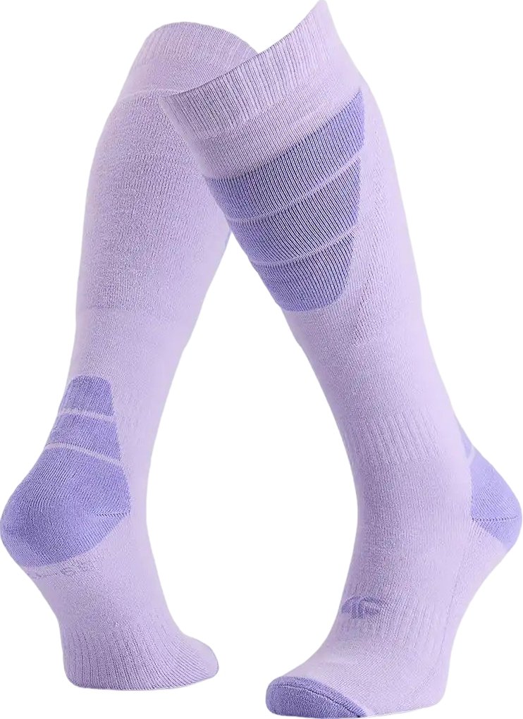 Damskie skarpety narciarskie 4F to idealne rozwiązanie dla miłośniczek zimowych sportów, zapewniając komfort i ochronę podczas intensywnych zjazdów. Dzięki długości sięgającej przed kolano, skutecznie chronią przed zimnem. Elastyczny górny ściągacz oraz dodatkowe wsparcie wokół łuku stopy i kostki zapewniają doskonałe dopasowanie, eliminując ryzyko przesuwania się skarpety. Kluczowe wzmocnienia na goleni, pięcie i palcach zwiększają trwałość i ochronę w newralgicznych miejscach, a panele wentylacyjne zapewniają odpowiedni przepływ powietrza, minimalizując wilgoć i gwarantując komfort termiczny.