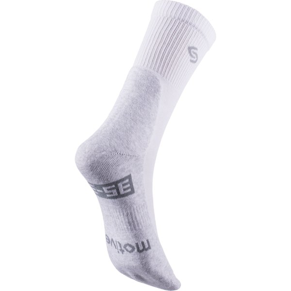 Uniwersalne skarpetki sportowe z trójwarstwową profilowaną dzianiną frotte, która chroni wrażliwe części stopy, z cienką, przewiewną dzianiną nad stopą i płaskim, nieuwierającym szwem nad palcami. Nowoczesne włókno Lycra® w całej skarpetce powoduje jej idealne, bezuciskowe przyleganie do nogi. Opaska elastyczna na śródstopiu zapobiega przesuwaniu się skarpetki nawet podczas gwałtownych ruchów. Skarpetki mają właściwości antybakteryjne, antygrzybicze i antyzapachowe, zapewniając maksymalną higienę użytkowania.