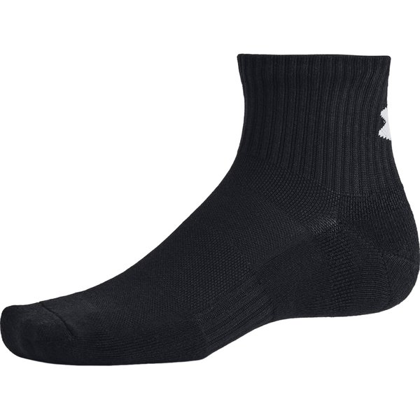 Skarpety sportowe marki Under Armour oferują użytkownikom wyjątkowy komfort i wsparcie w trakcie intensywnego wysiłku. Dzięki lekkiej i miękkiej tkaninie z domieszką bawełny, zapewniają komfort noszenia przez cały dzień. Skarpety skutecznie odprowadzają wilgoć, co zapobiega przegrzaniu stóp, a siateczkowe panele dodatkowo zwiększają przewiewność. Konstrukcja zapewnia idealne dopasowanie, utrzymując skarpety na miejscu nawet podczas dynamicznego ruchu. Średni stopień amortyzacji skutecznie chroni stopy przed wstrząsami, nie zwiększając przy tym masy. Zintegrowane podparcie łuku stopy redukuje zmęczenie, pozwalając na dłuższe treningi w komfortowych warunkach. Pakowane po trzy pary, skarpety stanowią doskonały wybór dla osób ceniących jakość i funkcjonalność.