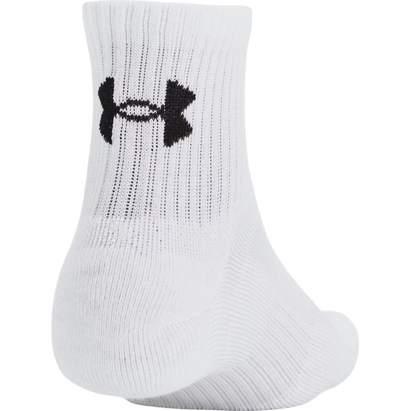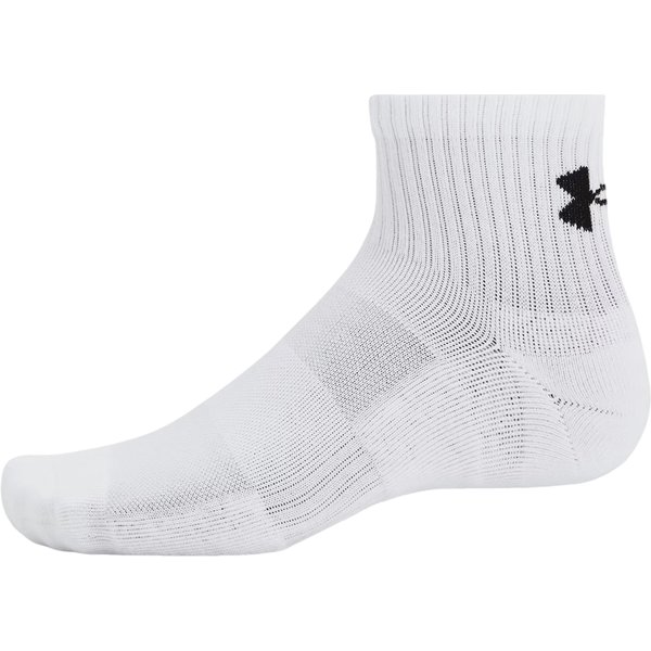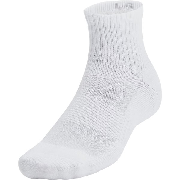 Skarpety sportowe marki Under Armour oferują użytkownikom wyjątkowy komfort i wsparcie w trakcie intensywnego wysiłku. Dzięki lekkiej i miękkiej tkaninie z domieszką bawełny, zapewniają komfort noszenia przez cały dzień. Skarpety skutecznie odprowadzają wilgoć, co zapobiega przegrzaniu stóp, a siateczkowe panele dodatkowo zwiększają przewiewność. Konstrukcja zapewnia idealne dopasowanie, utrzymując skarpety na miejscu nawet podczas dynamicznego ruchu. Średni stopień amortyzacji skutecznie chroni stopy przed wstrząsami, nie zwiększając przy tym masy. Zintegrowane podparcie łuku stopy redukuje zmęczenie, pozwalając na dłuższe treningi w komfortowych warunkach. Pakowane po trzy pary, skarpety stanowią doskonały wybór dla osób ceniących jakość i funkcjonalność.