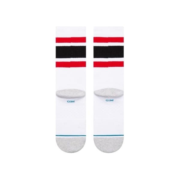 Skarpety Tube Chicago Bulls od marki Stance to wyjątkowe połączenie stylu i komfortu dla każdego fana koszykówki. Wykonane z mieszanki bawełny czesanej, te klasyczne, długie skarpetki męskie gwarantują niezrównaną wygodę dzięki elastycznemu ściągaczowi, który delikatnie otula łydkę bez ucisku. Miękka wyściółka w obszarze palców i pięty skutecznie redukuje nacisk, zapewniając jednocześnie doskonałą absorpcję wilgoci, co zmniejsza ryzyko powstawania otarć. Wzór z poziomymi paskami oraz haftowane logo drużyny Chicago Bulls nadają im niepowtarzalny charakter, idealny do codziennego noszenia lub na trybuny. Wzmocnione strefy palców i pięt zapewniają trwałość, a dbałość o szczegóły marki Stance sprawia, że te skarpetki są niezastąpionym dodatkiem do garderoby każdego entuzjasty sportu.
