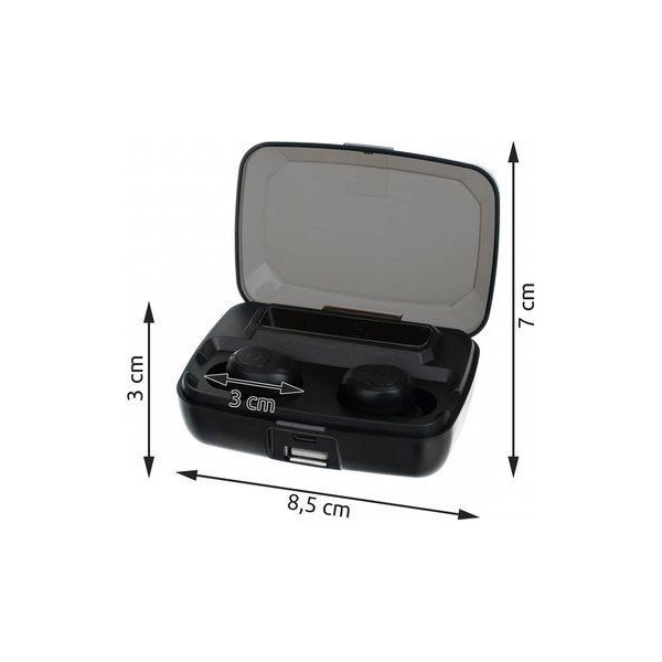 Kochasz muzykę i chcesz mieć ją zawsze przy sobie? Słuchawki bezprzewodowe z powerbankiem zagwarantują Ci tę przyjemność. Nie musisz już tracić czasu na rozplątywanie kabli, wystarczy że włożysz słuchawki do uszu. Z użyciem tego sprzętu możesz słuchać ulubionych wykonawców nawet do 6h. Jeśli zaistnieje potrzeba naładowania - wystarczy, że podepniesz produkt do powerbanka.