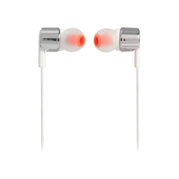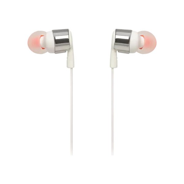 Słuchawki zaskoczą Cię głębokim brzmieniem muzyki, co jest efektem zastosowania JBL Pure Bass. Obsługa słuchawek jest niezwykle wygodna i praktyczna, gdyż odbywa się poprzez jednoprzyciskowy pilot z mikrofonem. Przewód słuchawek jest odporny na plątanie, co wynika z jego płaskiej konstrukcji. Słuchawki wyglądają bardzo stylowo dzięki metalowym elementom wykończenia.