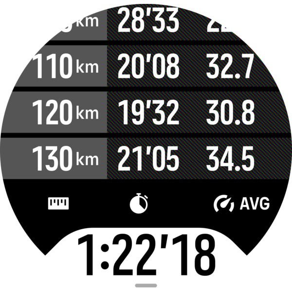 - tabela okrążeń w zegarku i aplikacji Suunto