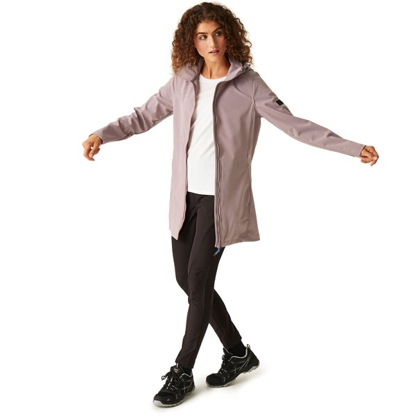 Softshell damski Carisbrooke Regatta to idealna opcja dla miłośniczek pieszych wędrówek. Wykonana z wodoodpornej i oddychającej tkaniny Softshell XPT, gwarantuje wygodę i trwałość. Dzięki regulowanemu kapturowi i zapięciu na zamek błyskawiczny, zapewnia ochronę przed deszczem i wiatrem. Kurtka posiada także dwie boczne kieszenie, zapięcie na napy przy mankietach oraz plakietkę z logo na lewym rękawie. Jej modelowany krój na sylwetkę i długi rękaw sprawiają, że sięga ona do bioder, zapewniając pełny zakres ruchu. Dodatkowo, tkanina wykonana jest z recyklingu, co przyczynia się do ochrony środowiska.
