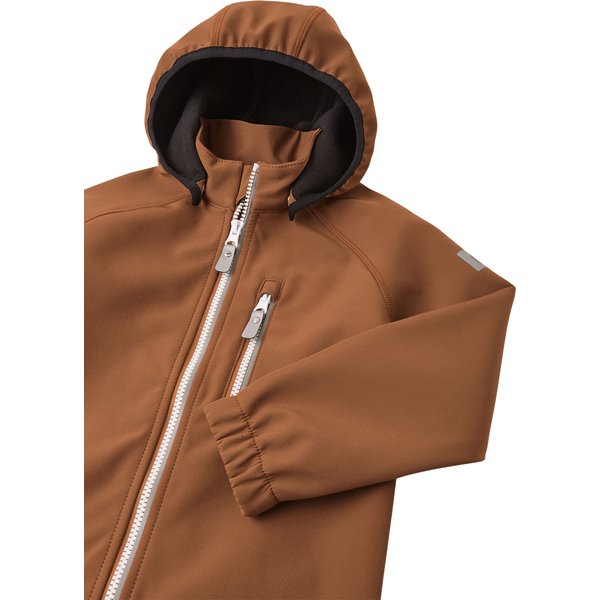 Kurtka softshell Vantti Reima to doskonały wybór dla dzieci w okresie przejściowym. Dzięki wodoodpornej i wiatroszczelnej tkaninie, zapewnia ochronę przed kapryśną pogodą, pozwalając najmłodszym na beztroskie odkrywanie świata. Miękki polar wewnątrz kurtki dostarcza przyjemnego ciepła, zwiększając komfort noszenia. Elastyczne mankiety i odpinany kaptur dodają praktyczności, a odblaskowe detale poprawiają widoczność dziecka po zmroku. Kurtka jest także wyrazem zrównoważonego podejścia do mody, wykonana z materiałów zatwierdzonych przez bluesign oraz włókien z recyklingu. To wybór, który łączy funkcjonalność z troską o środowisko.