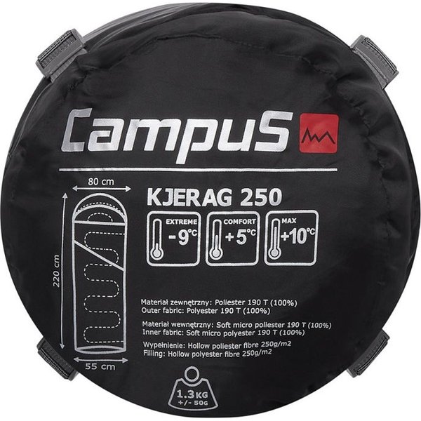 Śpiwór Kjerag 250 Campus został wyposażony w zamek błyskawiczny, który jest niezwykle trwały i łatwy w obsłudze. Dzięki niemu można szybko i wygodnie wchodzić i wychodzić ze śpiwora, bez zbędnego wysiłku. Ważnym elementem zestawu jest także worek kompresyjny, który umożliwia łatwe i wygodne spakowanie śpiwora. Pozwala on na zredukowanie rozmiaru, co jest niezwykle przydatne podczas podróży. Śpiwór Kjerag 250 Campus marki Campus to doskonały wybór dla wszystkich miłośników turystyki, poszukujących niezawodnego, wygodnego i funkcjonalnego śpiwora.