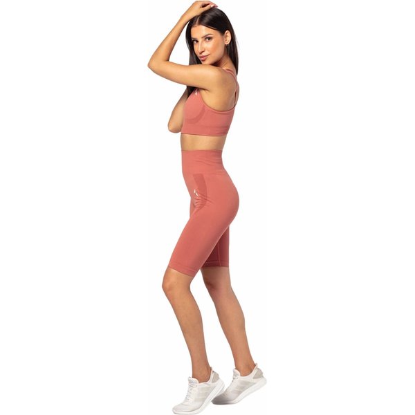 Bezszwowa konstrukcja spodenek eliminuje ryzyko otarć i podrażnień skóry, co sprawia, że są one idealne do noszenia przez dłuższe godziny podczas treningów na siłowni. Wysoki stan spodenek nie tylko dodaje atrakcyjności wizualnej, ale również poprawia proporcje sylwetki, podkreślając jej walory. Elastyczny pas spodenek oraz dopasowany krój sprawiają, że są one idealnie przylegające do ciała, jednocześnie nie ograniczając swobody ruchów. Małe logo umieszczone na lewym udzie dodaje spodenkom nowoczesnego i modnego charakteru, co sprawia, że są one nie tylko funkcjonalne, ale również stylowe.