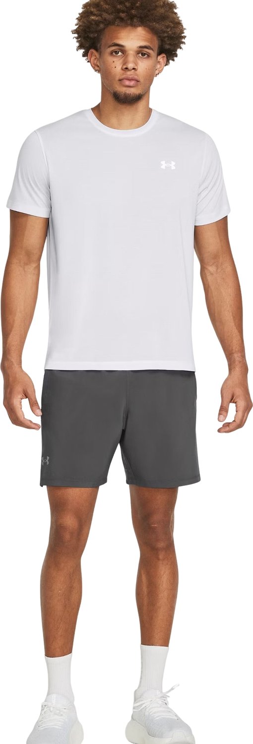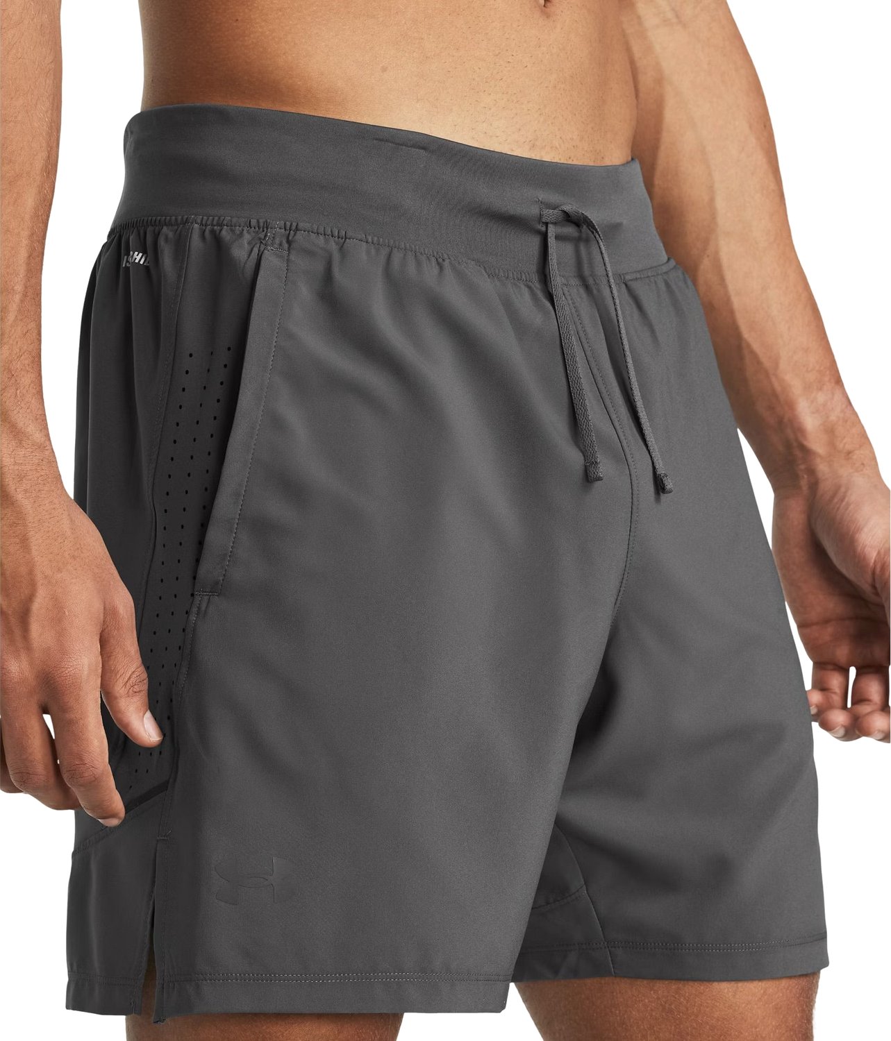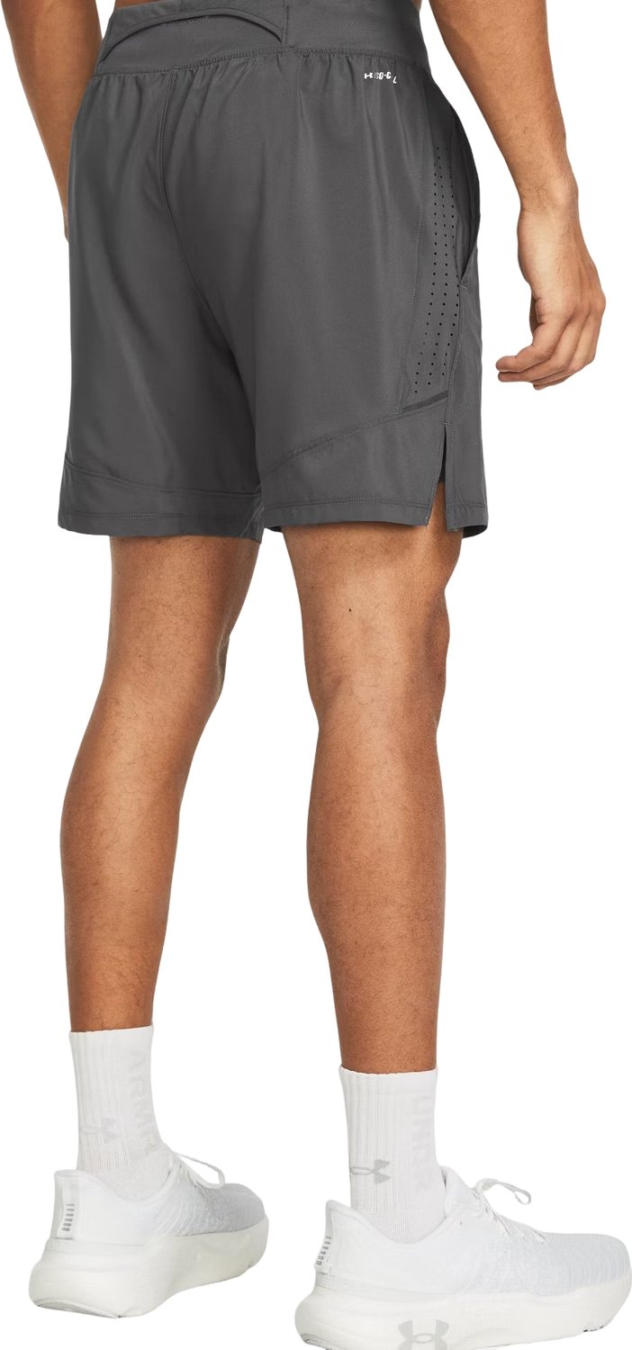Spodenki męskie Launch Elite 2w1 7'' Under Armour wykonane są z ultra-lekkiej, elastycznej tkaniny. Wbudowane siatkowe spodenki Iso-Chill rozpraszają ciepło ciała, dzięki czemu są chłodne w dotyku. Materiał rozciąga się we czterech kierunkach, jest szybkoschnący oraz szybko odprowadza wilgoć. Spodenki posiadają kieszenie boczne oraz rozszerzalną, wodoodporną kieszeń z tyłu, która zapewnia bezpieczeństwo telefonu. Elastyczny pas z wewnętrznym sznurkiem daje możliwość dopasowania, a odblaskowe elementy zwiększają bezpieczeństwo podczas biegów w słabym oświetleniu. Dopasowany, ale nie za obcisły krój, zapewnia wygodę i swobodę ruchu.