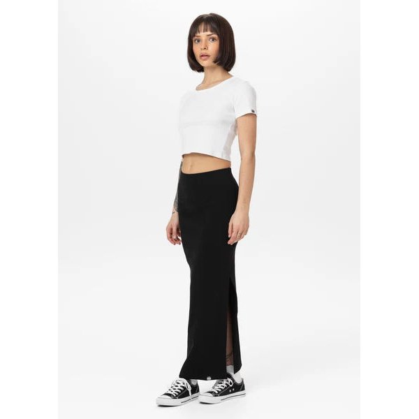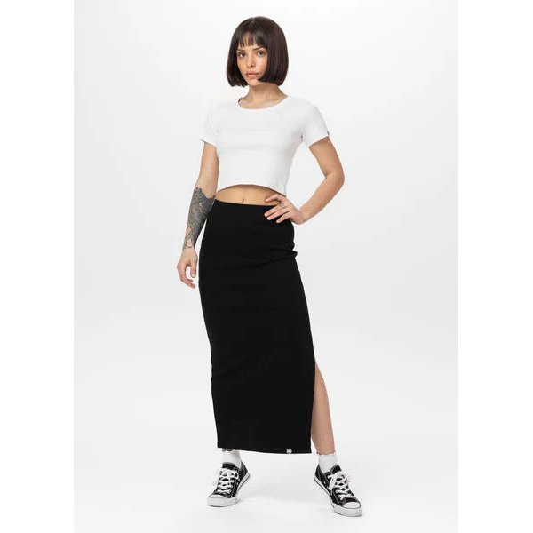 Damska spódnica Maxi Rib od Pitbull West Coast to doskonały wybór dla kobiet ceniących komfort i styl. Wykonana z połączenia bawełny i spandexu, zapewnia wyjątkową elastyczność oraz swobodę ruchów, co sprawia, że idealnie dopasowuje się do sylwetki. Jej dopasowany krój i prosty design podkreślają kobiecą figurę, a dodatkowe rozcięcie z boku dodaje elegancji i swobody. Szeroki ściągacz w pasie zapewnia wygodne noszenie przez cały dzień. Logo marki na dolnej krawędzi dodaje jej charakteru. To produkt, który doskonale sprawdzi się zarówno na co dzień, jak i na bardziej formalne okazje.