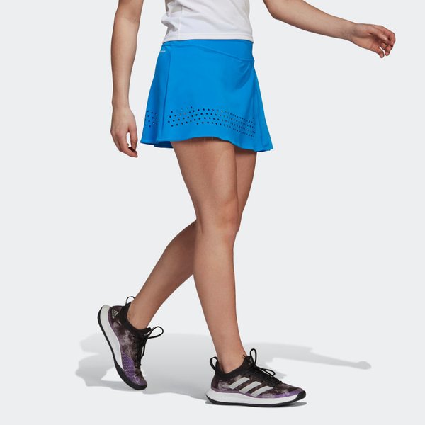 Została ona wykonana częściowo z materiałów z recyklingu, dlatego to dobry wybór dla osób, którym zależy na wyborze produktów przyjaznych dla środowiska. Spódnica ma standardowy krój, więc nie krępuje ruchów. Spodenki zapewniają dobre krycie i pozwalają czuć się pewnie w każdej sytuacji. Szeroki pas gwarantuje dobrze utrzymanie spódnicy. Laserowe wycięcia na dole umożliwiają cyrkulację powietrza. Wykorzystana w tym modelu technologia Aeroready sprawia, że tkanina szybko wysycha.