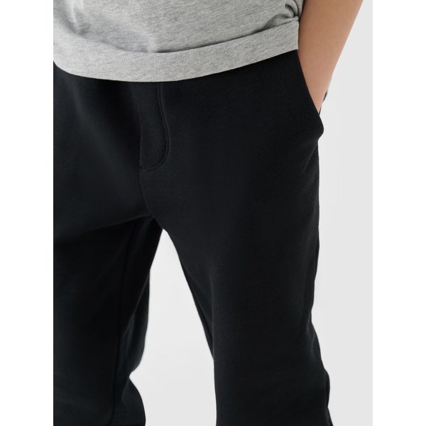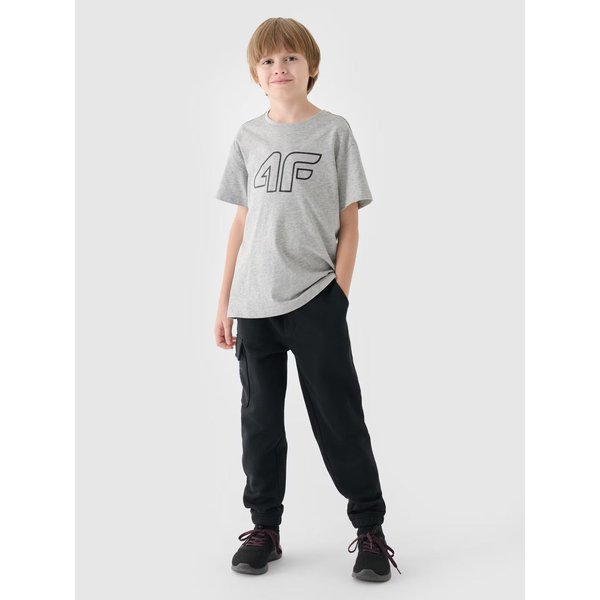 Spodnie chłopięce 4F to idealny wybór na co dzień, łączący wygodę i styl. Dzięki krojowi regular i elastycznym ściągaczom na nogawkach, spodnie doskonale dopasowują się do sylwetki, zapewniając pełną swobodę ruchów. Miękki splot single jersey sprawia, że noszenie ich jest niezwykle komfortowe. Kieszenie boczne oraz dodatkowa kieszeń z klapką na prawej nogawce, oferują praktyczne miejsce na drobiazgi. Te dresowe joggery nadają się zarówno na casualowe, jak i sportowe stylizacje, co czyni je wszechstronnym elementem garderoby każdego chłopca.