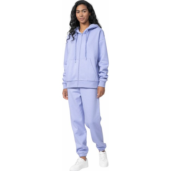 Te spodnie dresowe damskie to idealny wybór dla kobiet, które cenią sobie wygodę i styl. Miękka, dwuwarstwowa dzianina z czesanym wnętrzem i gładką powierzchnią zewnętrzną zapewniają doskonały komfort cieplny. Spodnie posiadają szeroki pas z regulacją na troki oraz 2 otwarte kieszenie po bokach i dodatkową kieszeń z tyłu. Lekko zwężone nogawki zakończone gumką dodają im modny, sportowy wygląd. Przyjemna w dotyku dzianina z wysoką zawartością bawełny to gwarancja trwałości i wygody noszenia. Spodnie dresowe damskie to idealny wybór na co dzień, do szkoły, pracy czy po prostu jako element garderoby sportowej.