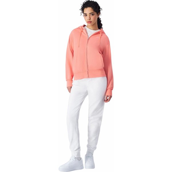 Spodnie dresowe damskie Champion to idealny wybór dla aktywnych kobiet, które cenią sobie wygodę i styl. Wykonane z lekkiej, rozciągliwej tkaniny o gramaturze 240 g/m² zapewniają komfort noszenia. Elastyczny pas z sznurkiem pozwala na idealne dopasowanie do figury, a prążkowane mankiety dodają sportowego charakteru. Dwie kieszenie boczne umożliwiają przechowywanie najpotrzebniejszych drobiazgów. Haftowane logo C dodaje elegancji. Spodnie posiadają regularny krój, który nie jest ani zbyt luźny, ani zbyt ciasny. Doskonałe na co dzień i do aktywności fizycznej. Oryginalny design i wysoka jakość wykonania gwarantują satysfakcję z zakupu.