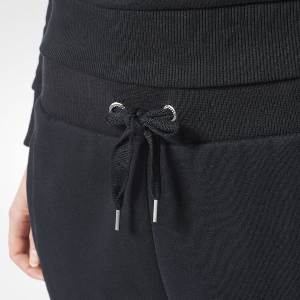 Naturalna bawełna i poliester French terry to połączenie, które nie zawodzi. French terry to tkanina o dwóch różnych strukturach, która z jednej strony jest płaska i gładka, a z drugiej widoczny jest wyraźny splot. Materiał ten doskonale wchłania pot, co w połączeniu z przewiewnością, jaką gwarantuje bawełna sprawia, że Slim Cuffed Track świetnie sprawdzą się podczas wzmożonego wysiłku fizycznego. Dopasowany krój z elastyczną talią zapewni Ci maksymalną swobodę ruchów, by żadne ćwiczenie nie okazało się niewykonalne. Nogawki wykończone zostały ściągaczami, dzięki czemu nie będą się podwijać i tym samym Cię dekoncentrować. Nie zapomniano także o przydatnych bocznych kieszeniach oraz logo Trefoil, które jest pieczątką potwierdzającą wysoką jakość spodni.