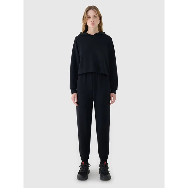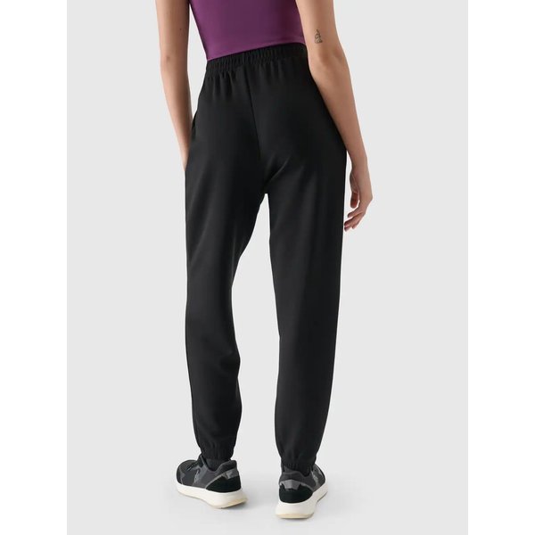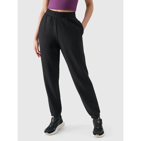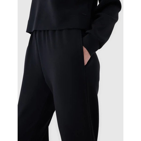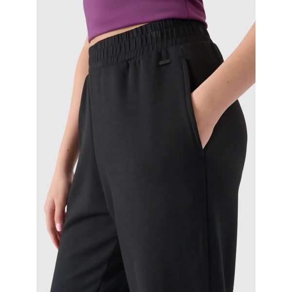 Spodnie dresowe damskie marki 4F to idealne połączenie komfortu i stylu dla aktywnych kobiet. Dzięki zastosowaniu dzianiny interlock, materiał jest wyjątkowo miękki i przyjemny w dotyku, co zapewnia wygodę przez cały dzień. Elastyczny pas i ściągacze przy kostkach gwarantują doskonałe dopasowanie do sylwetki i swobodę ruchów. Zwężane nogawki podkreślają modny, sportowy wygląd, a boczne kieszenie stanowią praktyczne rozwiązanie do przechowywania drobnych przedmiotów. Spodnie łączą w sobie funkcjonalność i modny design, co czyni je doskonałym wyborem na co dzień.