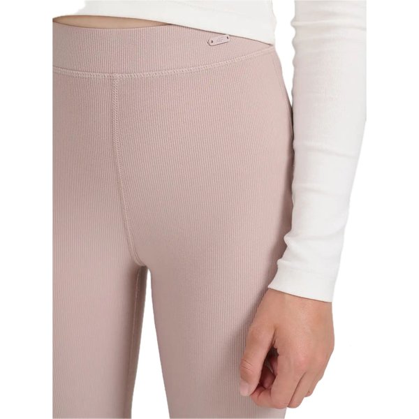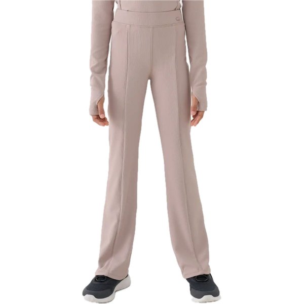 Dziewczęce spodnie dresowe marki 4F to synonim komfortu i stylu na co dzień. Prążkowany materiał o średniej gramaturze zapewnia nie tylko miękkość, ale również doskonałą przewiewność, idealną na cieplejsze dni. Dzięki dopasowanemu krojowi slim i rozszerzanym nogawkom typu dzwony, spodnie te podkreślają sylwetkę, pozostając jednocześnie niezwykle wygodne. Syntetyczna tkanina z dodatkiem elastanu gwarantuje trwałość i elastyczność, co przekłada się na nieskrępowaną swobodę ruchów. Prostota klasycznego fasonu bez kieszeni oraz elastyczny pas zapewniają minimalistyczny wygląd, czyniąc te spodnie doskonałym wyborem zarówno do codziennych, jak i sportowych stylizacji.