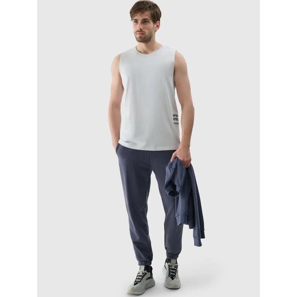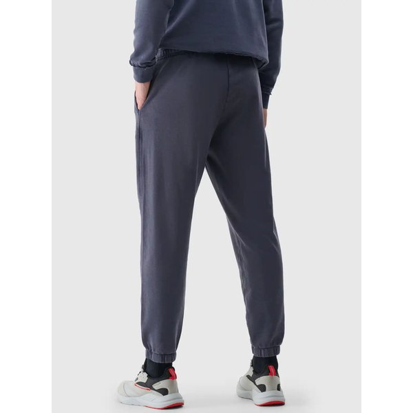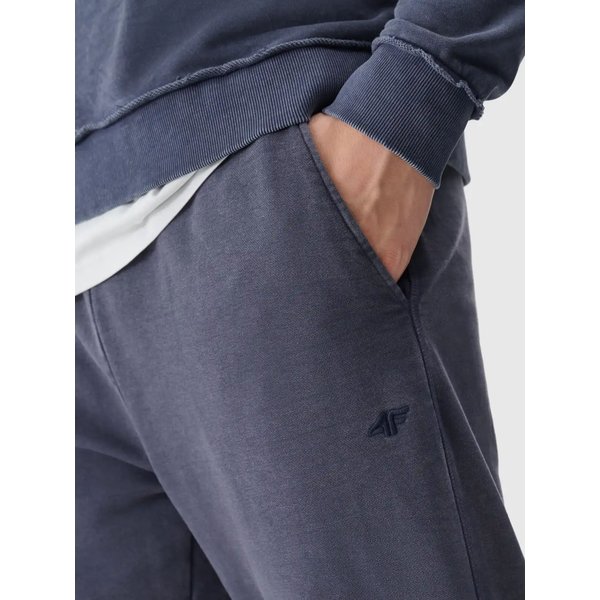 Te spodnie dresowe męskie od 4F to idealne połączenie komfortu i stylu. Wykonane z przyjemnej w dotyku dzianiny french terry, zapewniają miękkość dzięki dominującej zawartości bawełny, a dodatek poliestru gwarantuje trwałość. Elastyczna gumka w pasie oraz regulacja pozwalają na idealne dopasowanie, co zwiększa wygodę noszenia na co dzień. Dwie praktyczne kieszenie boczne są idealne do przechowywania drobiazgów, a nogawki zakończone ściągaczami dodają nowoczesnego wyglądu i zapewniają lepsze dopasowanie. Efekt acid wash nadaje spodniom modnego wyglądu, co w połączeniu z luźnym krojem i widocznym szwem dodaje im charakteru.