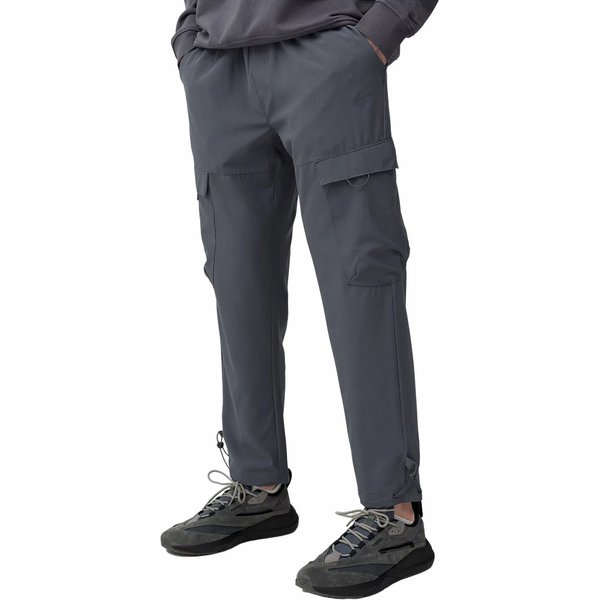Te spodnie męskie zapewnią Ci wygodę i styl podczas letnich aktywności. Dwie boczne kieszenie cargo pomieszczą drobiazgi, a elastyczny pas z wewnętrzną regulacją zapewni idealne dopasowanie. Proste, wygodne nogawki ze ściągaczami z trokami nadadzą Ci casualowego looku. Ciesz się wakacjami w spodniach, które są świetnym wyborem dla każdego aktywnego mężczyzny.