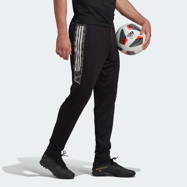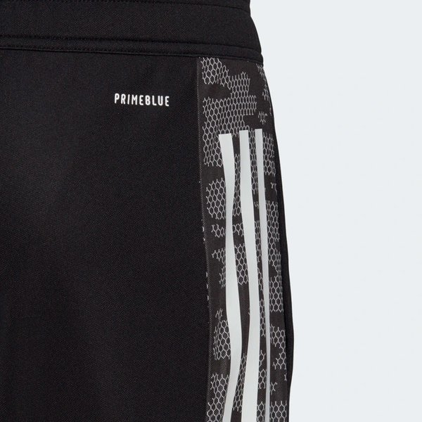 Condivo 21 Primeblue Track Pants marki Adidas to piłkarskie spodnie męskie o kroju ze zwężanymi nogawkami. Produkt ten należy do linii Primeblue, co oznacza, że zawiera co najmniej 50% przędzy wykonanej z Parley Ocean Plastic - tworzywa z przetworzonych plastikowych odpadów zebranych z terenów nadmorskich, by zapobiegać zanieczyszczeniu oceanów.