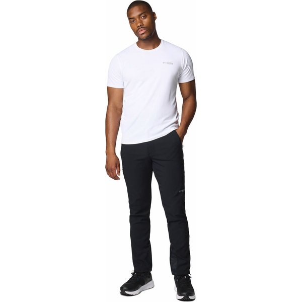Dzięki szczegółowo zaprojektowanym elementom, jak klinowe rozcięcie na nogawce i klips na getry, spodnie te oferują wszechstronne zastosowanie. Możesz je nosić zarówno podczas górskich wędrówek, jak i innych outdoorowych aktywności, ciesząc się pełną funkcjonalnością i wygodą. Zapięcie na guzik i zamek w połączeniu ze szlufkami na pasek gwarantuje pewne trzymanie się spodni na miejscu. Logo marki Columbia delikatnie umieszczone na udzie i z tyłu dodaje całości sportowego charakteru i podkreśla wysoką jakość wykonania.