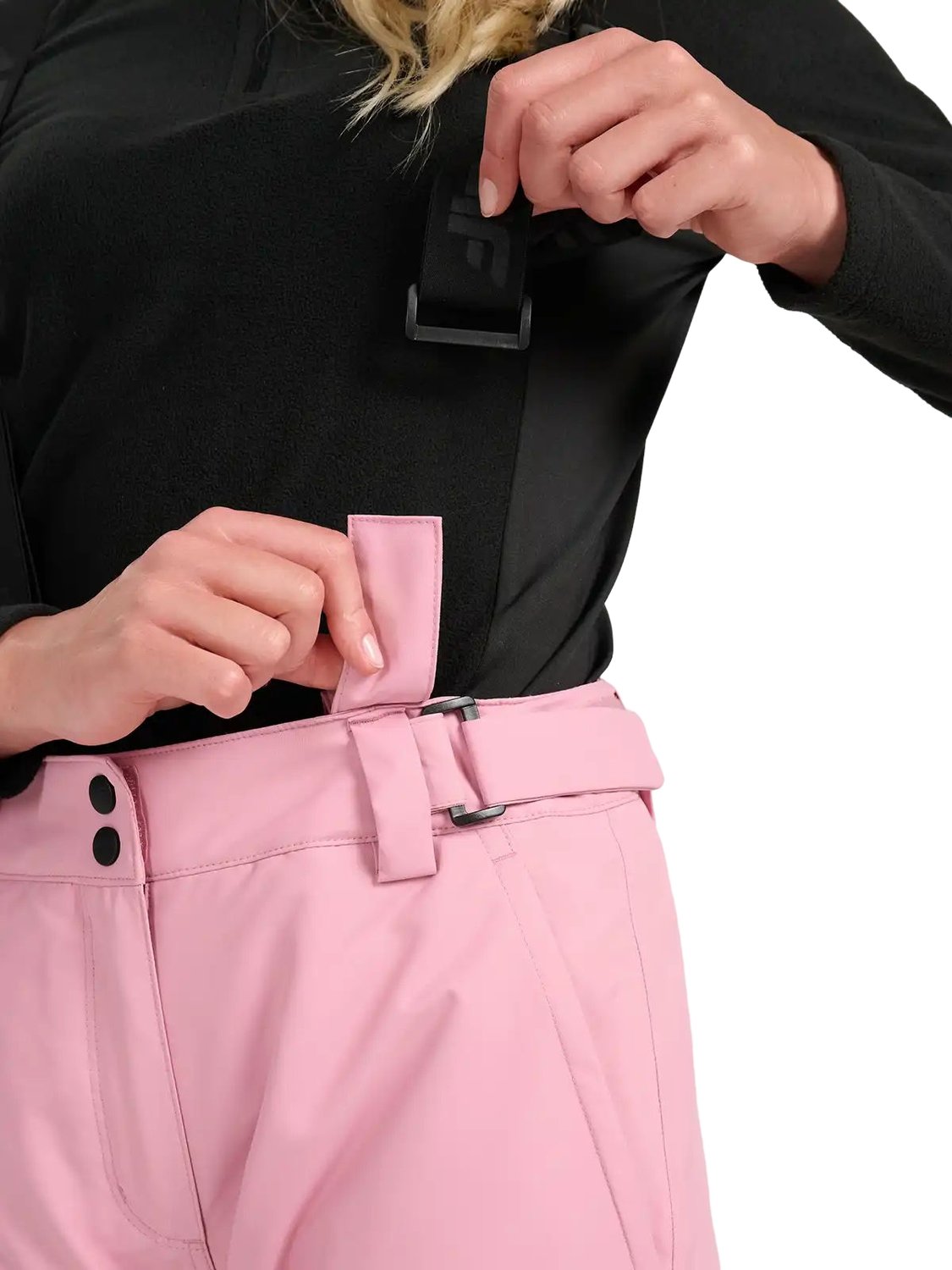 Damskie spodnie narciarskie marki 4F to idealny wybór dla miłośniczek sportów zimowych, które cenią sobie komfort i niezawodność. Dzięki zastosowanej membranie, spodnie skutecznie chronią przed wilgocią, zapewniając suchość i wygodę podczas intensywnego użytkowania. Hydrofobowa impregnacja oraz klejone szwy dodatkowo zwiększają wodoodporność, co czyni je niezastąpionymi na stoku. Regulowane szelki i pas na rzepy umożliwiają doskonałe dopasowanie, a profilowane kolana zapewniają pełną swobodę ruchów. Zewnętrzne, zapinane kieszenie dodają praktyczności, a wzmocnienia w dolnej części nogawek zapewniają trwałość. Wewnętrzne nogawki przeciwśnieżne stanowią dodatkową ochronę przed śniegiem.