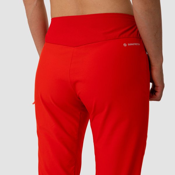 Minimalistyczny design i klasyczny krój z prostą, wąską nogawką, wstawką w kroku i wyprofilowanymi kolanami pozwala na całkowicie swobodny ruch podczas wędrówki. Estetyczny, ergonomiczny pas wygodnie układa się pod uprzężą i posiada regulację na ściągacz. Ponadto spodnie wyposażone zostały w kieszenie po bokach i zapinaną kieszeń cargo na udzie. Elastyczny materiał umożliwia precyzyjną pracę nóg i wchodzenie na wysokie stopnie.