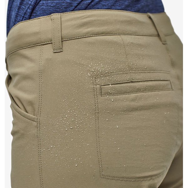 | POWŁOKA DWR | Spodnie Quandary od marki Patagonia zostały pokryte specjalną powłoką hydrofobową DWR, która odpycha wodę i blokuje dotarcie kropli do wewnątrz, a co za tym idzie - zapobiega całkowitemu przemoczeniu. |
