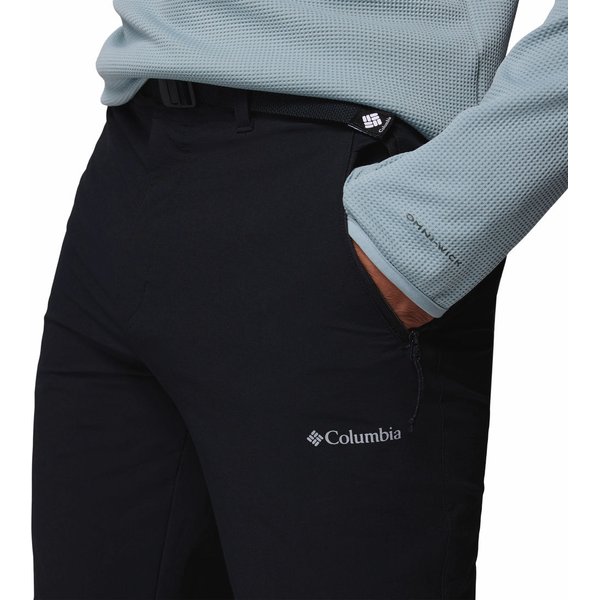 Design spodni łączy stylowy, prosty krój z praktycznymi detalami, co czyni je uniwersalnym wyborem zarówno na szlak, jak i do codziennego użytku. Logo umieszczone na lewej nogawce i z tyłu przypomina o renomie marki Columbia, symbolizując wysoką jakość i doświadczenie w produkcji odzieży outdoorowej.