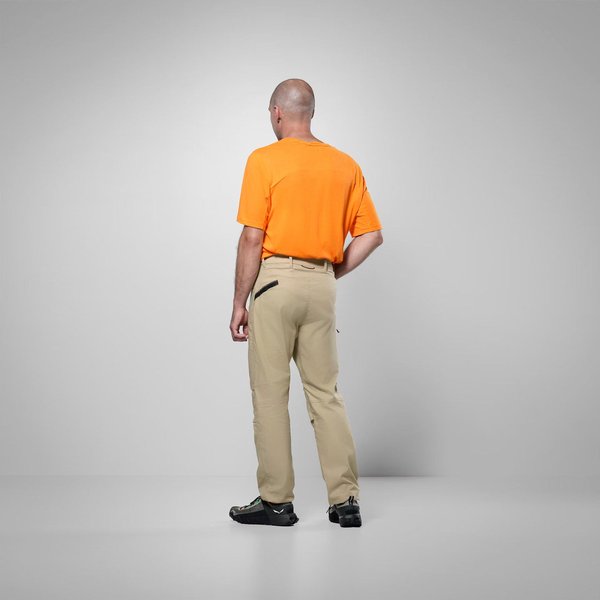 Kluczową cechą tych spodni jest ich wszechstronność w poruszaniu się. Dzięki klinowi w kroku oraz wstępnie uformowanym kolanom, użytkownik może cieszyć się pełną swobodą ruchów, co jest nieocenione podczas dynamicznych wspinaczek czy trekkingu po zróżnicowanym terenie. Wzmocnienia na kolanach oferują dodatkową ochronę i trwałość, co pozwala na intensywne użytkowanie bez obaw o szybkie zużycie. Funkcjonalność spodni Agner Hemp Ripstop dopełniają praktyczne elementy, takie jak liczne kieszenie. Dwie przednie kieszenie pozwalają na bezpieczne przechowywanie niezbędnych drobiazgów. Dzięki szlufkom na pasek i dedykowanej szlufce na woreczek na magnezję, spodnie te są szczególnie atrakcyjne dla miłośników boulderingu.