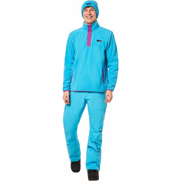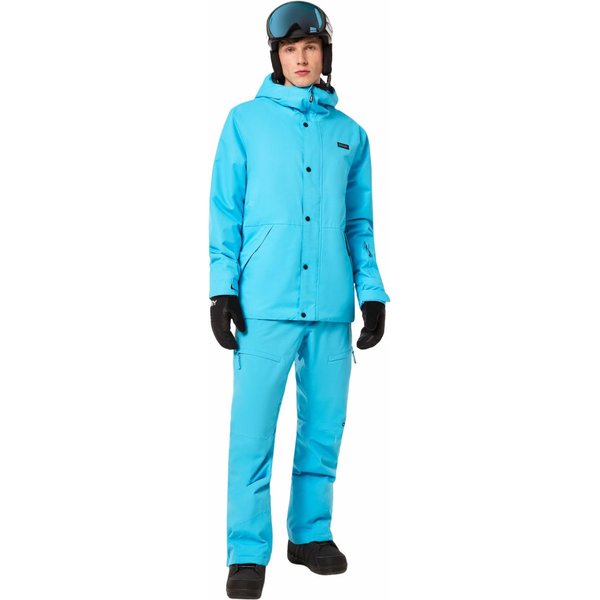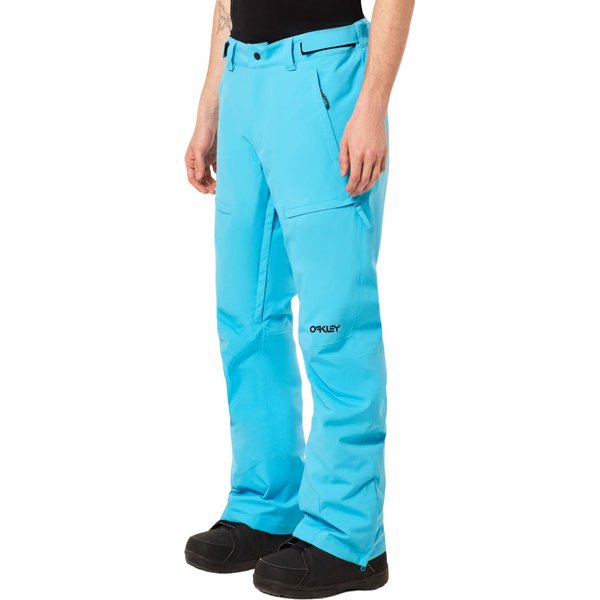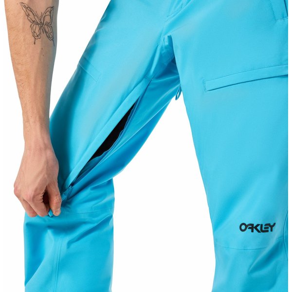 Wykonane z wysokiej jakości poliestru, gwarantującego trwałość i odporność na warunki atmosferyczne, co docenisz już na samym początku użytkowania. Ich w pełni klejone szwy zapewniają ochronę przed wilgocią i wiatrem, dlatego nawet niepewna pogoda nie będzie dla Ciebie problemem. Regulowana talia z guzikiem i rzepem zapewnia idealne dopasowanie oraz uniemożliwia przesuwanie się, czy podwijanie materiału. Praktyczne kieszenie na suwak zapewniają bezpieczne przechowywanie drobiazgów, a gdy najdzie taka potrzeba będziesz mógł ogrzać tam swoje zmarznięte dłonie. Wewnętrzne otwory wentylacyjne z siateczką na udach zapewniają odpowiednią cyrkulację powietrza, a wzmocnione panele zwiększają wytrzymałość - wpływa to doskonale na użytkowanie. Spodnie posiadają również elastyczne ochraniacze na buty z metalowym haczykiem, eliminując ryzyko dostania się do środka śniegu. Ponadto, na spodniach znajduje się logo marki Oakley, świadczące o ich wysokiej jakości.