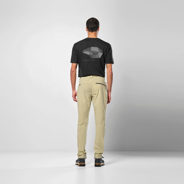 Dzięki lekkiemu i odprowadzającemu wilgoć materiałowi Durastretch, spodnie są nie tylko odporne na wiatr, ale także szybko schną i zapewniają dużą swobodę ruchów dzięki możliwości rozciągania się w czterech kierunkach. Tkanina jest bardzo trwała i odporna na przetarcia. Dopasowany, regularny krój trekkingowy sprawia, że spodnie idealnie leżą na sylwetce, nie krępując przy tym ruchów. Ergonomicznie zaprojektowany pas z zatrzaskiem i szlufkami pozwala na wygodne dopasowanie.