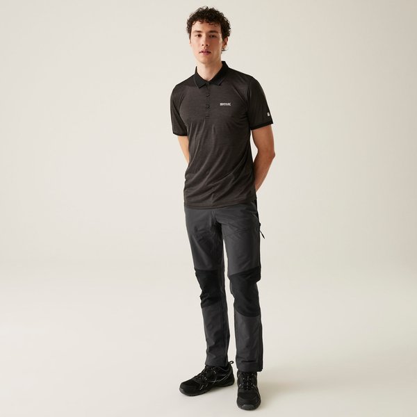 Spodnie trekkingowe męskie Questra V Regatta są idealnym wyborem na przygody na świeżym powietrzu. Wykonane z odpornego na warunki atmosferyczne materiału Isoflex, zapewniają swobodę ruchu. Dzięki zaawansowanej, rozciągliwej tkaninie oraz wstawkom teksturowanym z rozciągliwej siatki, spodnie są elastyczne i wygodne. Posiadają wiele kieszeni, w tym kieszeń na nogawce zapinaną na zamek, idealną na przechowywanie drobnych przedmiotów. Elastyczna talia oraz system wentylacji nóg zapewniają dodatkowy komfort. Spodnie są odporne na wiatr i odpychają wodę, a wzmocnienia na kolanach zapewniają trwałość. Lekko zwężane nogawki i klasyczny design sprawiają, że spodnie prezentują się stylowo i pasują do różnych outdoorowych stylizacji.
