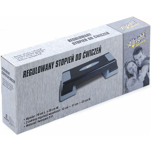 Nie obawiaj się, że nie dasz rady. Każdy kiedyś zaczynał i marka Allright o tym wie! Właśnie z tego powodu model ten posiada regulowaną wysokość aż w 3 stopniach. Poziom platformy zawsze więc dostosujesz perfekcyjnie i do swoich oczekiwań, i do własnych możliwości! Ba, nawet w trakcie jednej sesji treningowej wygodnie i szybko obniżysz lub podniesiesz wysokość stepu, tak aby dopasować go do wykonywanego ćwiczenia.