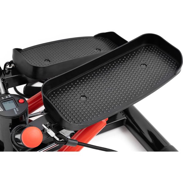 Wbudowany komputer wyświetla wszystkie najważniejsze informacje takie jak czas treningu, spalone kalorie, całkowitą liczbę kroków oraz kroki na minutę. Natomiast łatwa i szybka regulacja wysokości pedałów, pozwoli Ci dostosować stepper to własnych wymagań.